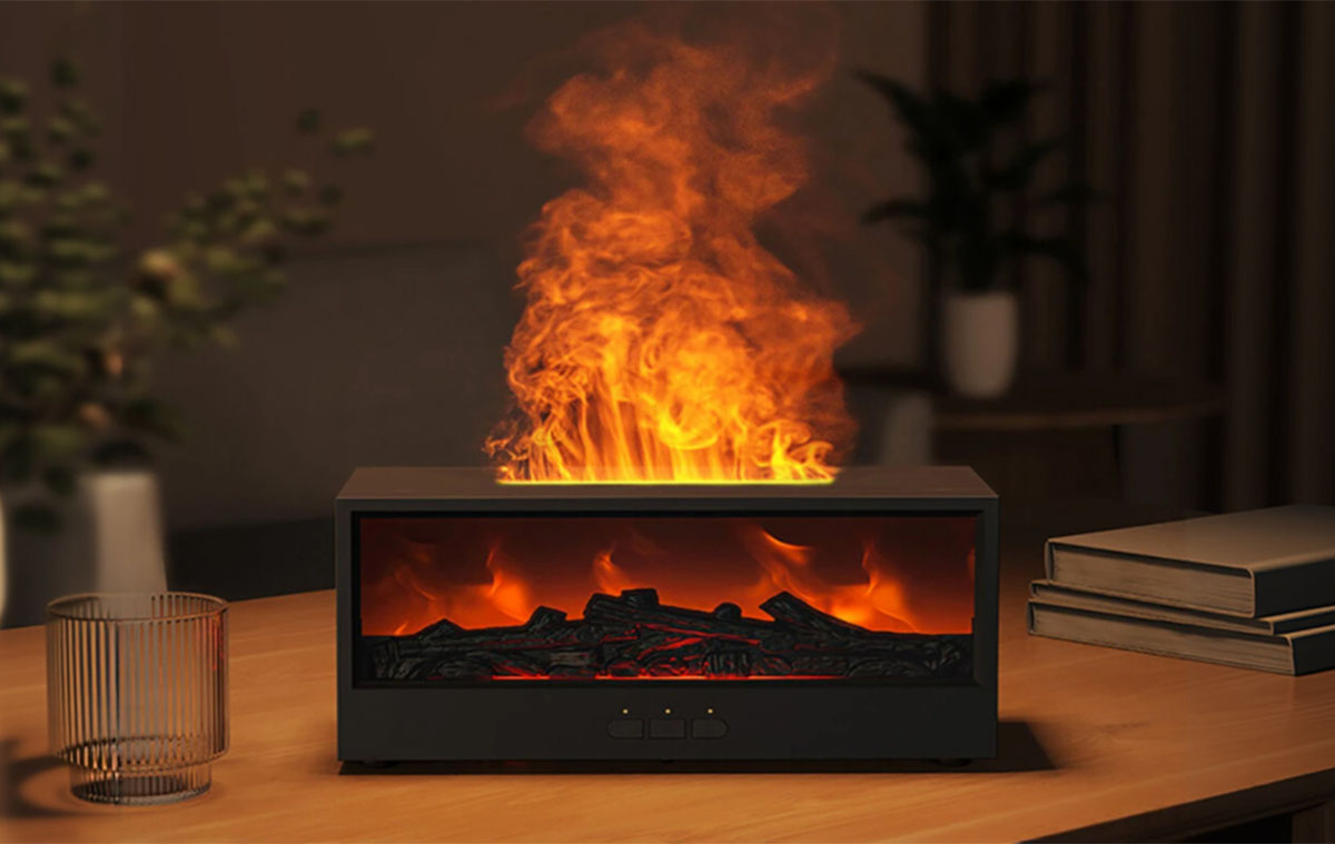 Ez valójában egy párásító és a távozó párát megvilágítva éri el a láng hatást, ami egyébként színes is lehet.
