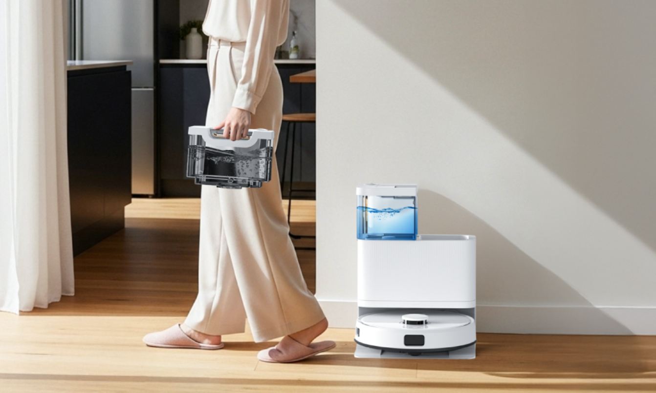 A D63S ULTRA nem csak robotporszívó hatalmas, 10 000 Pa szívóerővel, hanem teljes megoldás: a begyűjtött koszt saját maga üríti ki, ami nagy előny, mert nem kell hozzányúlni, viszont fel is mos, de nem csak egy darab rongyot húzkod mindenfelé, hanem két forgó mop végzi a tisztítást, amit ki is öblít, nem a koszt keni szét.