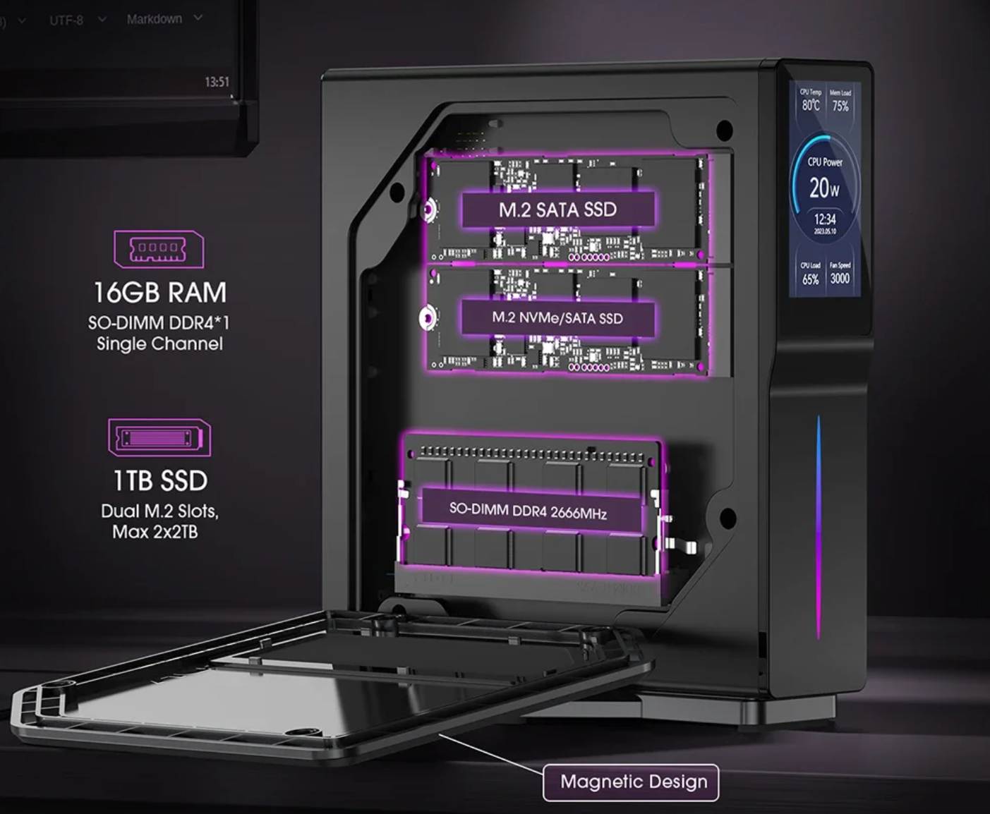 Az Intel N100 dolgozik benne, amely négy magos és már teszteltünk ilyen processzort, a mindennapi dolgokhoz teljesen jó, ahogy a 16GB RAM és az 512GB-os SSD meghajtó is.