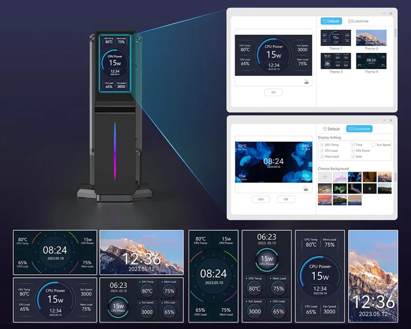 És a döbbenet jogos, mert nagyon nem megszokott a dizájn – annyira nem, hogy még egy kis kijelzője van, amin egyébként bármi megjelenhet, de a legjobb döntés, ha a hardver használatot mutatja, hiszen az kifejezetten hasznos.
