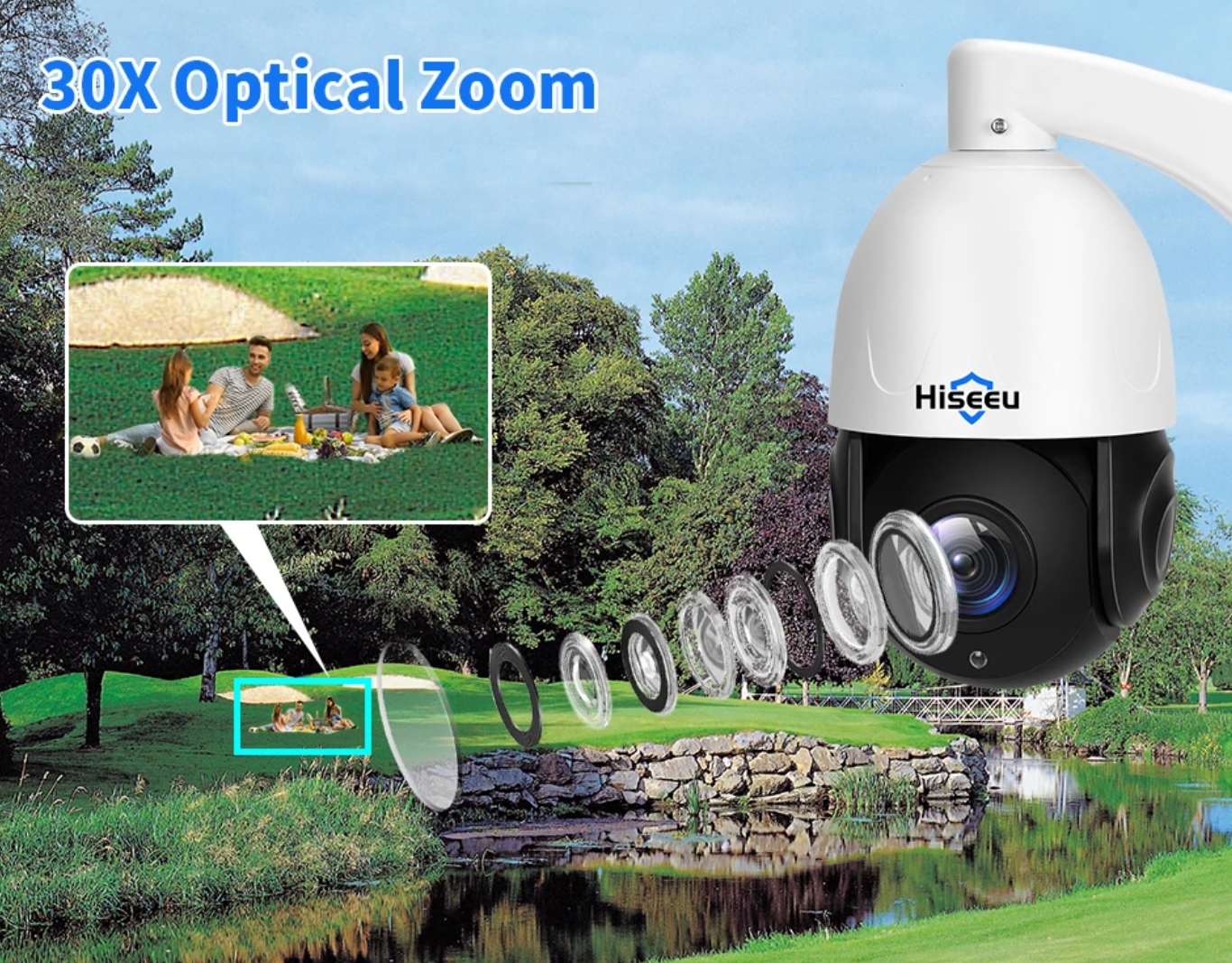 A Hiseeu kamerája nem egy szokványos biztonsági kamera, mert a 30x-os optikai zoommal és a 100 méter éjjellátással semmi nem marad rejtve még egy nagyobb telken sem.