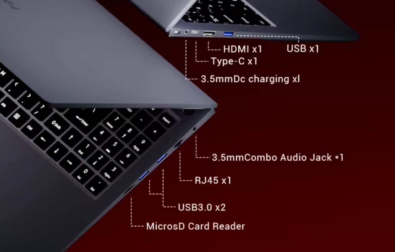 Windows 11 jön vele ingyen és ezek a bemenetek állnak rendelkezésre: USB3 x 2, USB 2, 3.5mm jack, HDMI, memóriakártya, wifi, LAN.