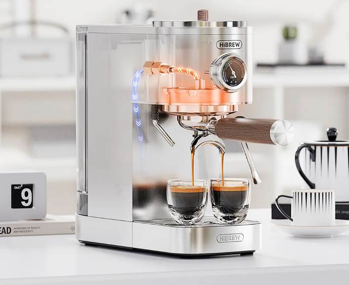 A HiBREW H13 annak szól, aki komolyan veszi a reggeli kávét, és nem éri be a – bár gyors – kapszulás megoldásokkal. Ez egy félautomata kávéfőző, ami úgy néz ki és úgy működik, mint a profi baristák gépe, csak otthon.
