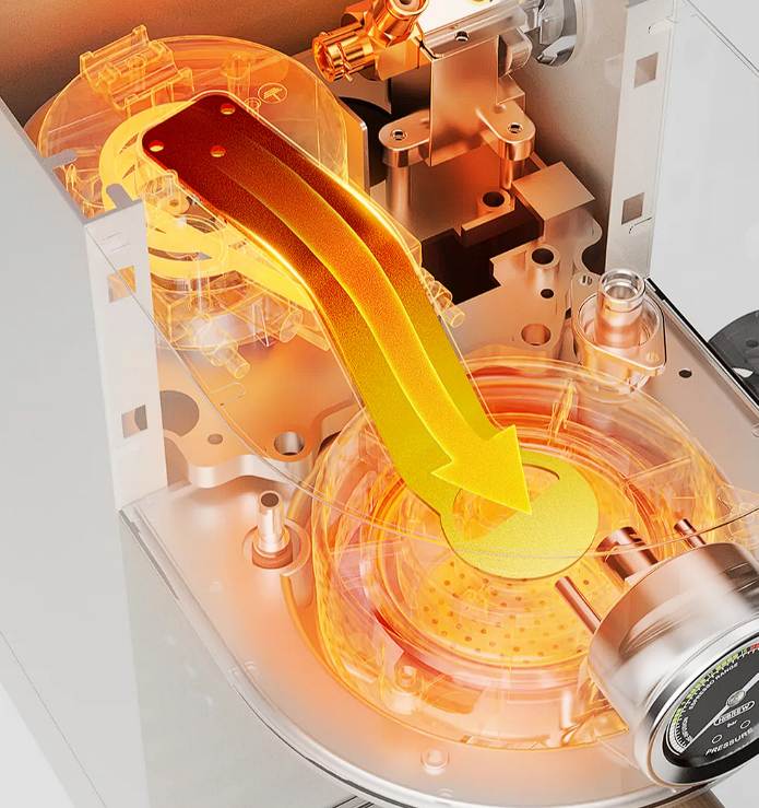 A dupla vízmelegítős rendszer a legfontosabb tulajdonsága: az egyik kazán az eszpresszó készítéséért felel stabil, ideális hőmérsékleten, a másik pedig kifejezetten a gőzért dolgozik, amit a tejhabosításhoz használsz.