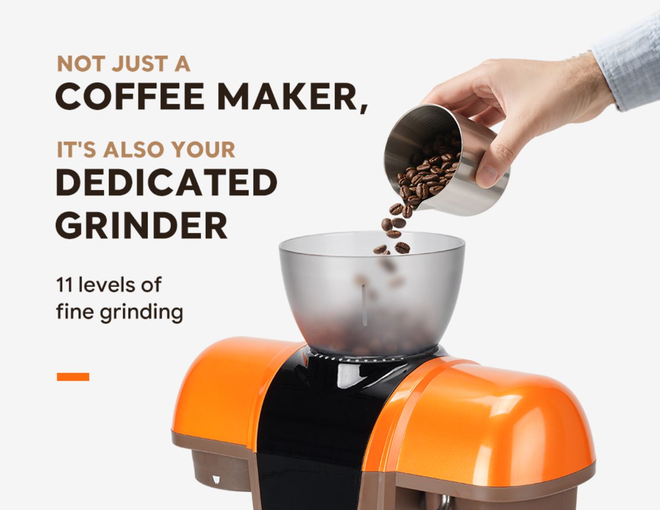Az árkategóriában nem megszokott módon beépített darálója is van, amely 11 szemcsemérettel tud darálni, így arra nem kell költeni és nem is foglal helyet.