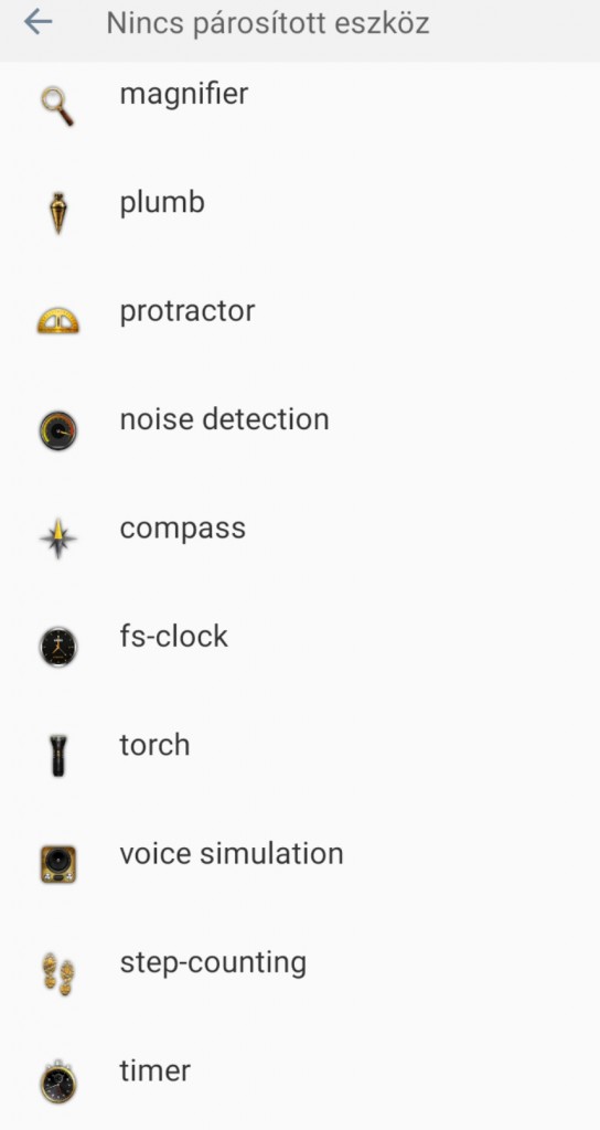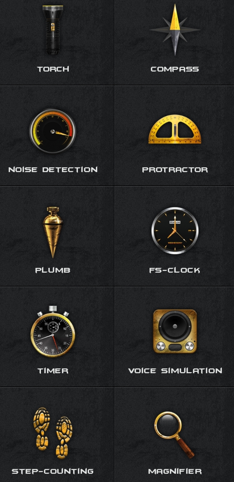 A toolbag-ban ad pár speicális alkalmazást, mint az iránytű, vízszintező, stopper hang szimuláció (kutya, sziréna, stb.), nagyító, ilyesmi.