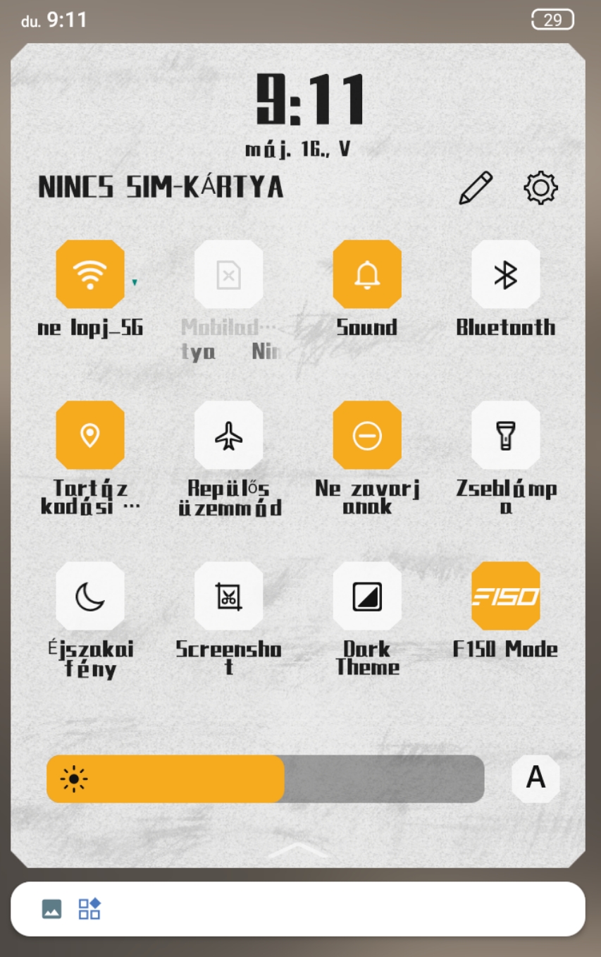 Hosszan nyomva pedig az F150 mód aktiválható, amely a szabadtéri tevékenységek esetén lenne jó, de messze van attól, amit szívesen használunk. 🙂 Lényegében egy launcher saját ikonokkal.