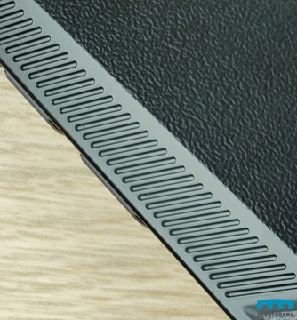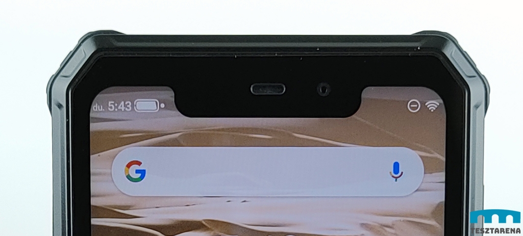 Szemből nézve még nem is annyira találni semmi extrát, ha csak a retro notch (szenzor sziget) nem számít annak. A sarkokat persze lecsapta a gyártó és gumival vonta be, ezért nagyon nehezen sérülnek.