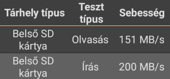 A belső tárhely sebessége nem éppen rekord gyanús, de nem is extrém lassú.