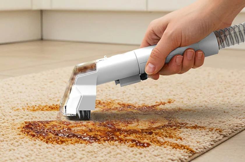 A működése pofonegyszerű, de hatékony: nagy nyomással engedi a vizet és a tisztítószert a szálak közé, a kefe fellazítja a mocskot, a vákuum pedig azonnal vissza is rántja a trutyit a külön tartályba.