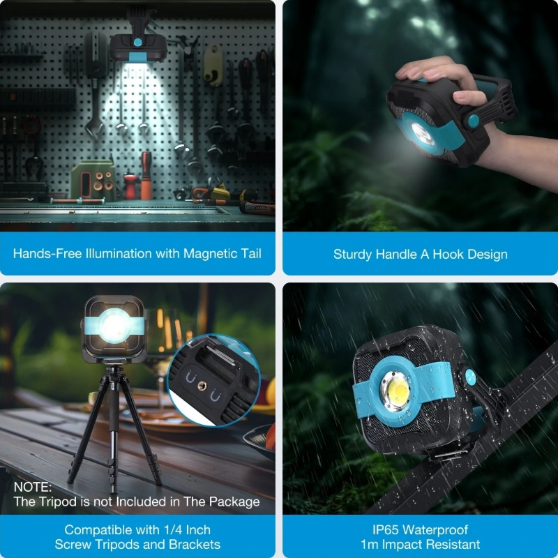 A kialakítása rendkívül praktikus: a stabil talp segítségével szinte bárhová leteheted, a kihajtható fogantyúval pedig kényelmesen hordozhatod. A hátulján található erős mágneseknek köszönhetően bármilyen fémfelületre odatapad, legyen az egy autó motorházteteje vagy egy fém polc a garázsban.