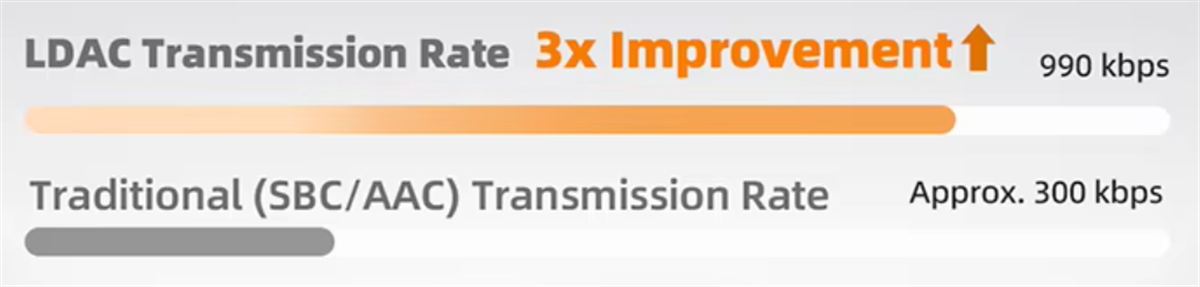 A hangzásnál segít az LDAC codec, amely szemben például az SBC-vel, képes 990kbps bitrátára, amely kb. háromszorosa annak, amit az SBC tud.