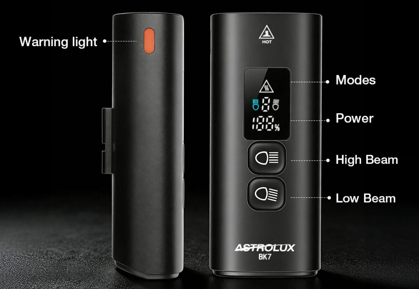 Az Astrolux BK7 egy olyan kerékpár lámpa, amely nagy fényerőt ad, hanem távirányítója is van, amellyel nem csak az első, hanem a hátsó irányjelzőt is lehet kapcsolgatni.