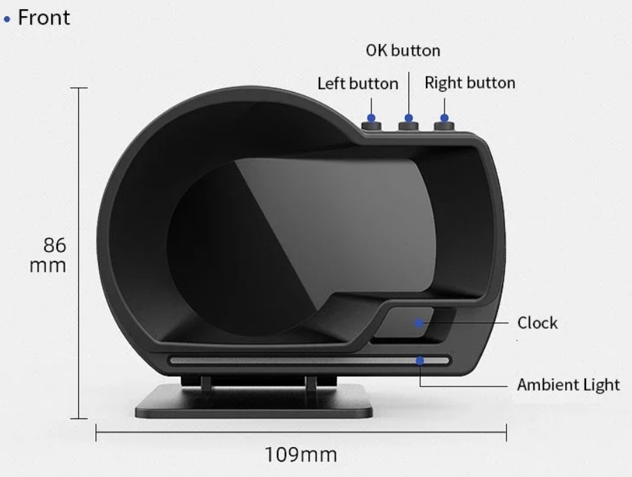 Ez a HUD kijelző messze túlmutat a szokványos műszerfalakon: 3″-os képernyője kompakt (a teljes mérete 109 x 86 mm), mégis jól olvasható, így bármilyen autó belső terében könnyedén elhelyezhető.