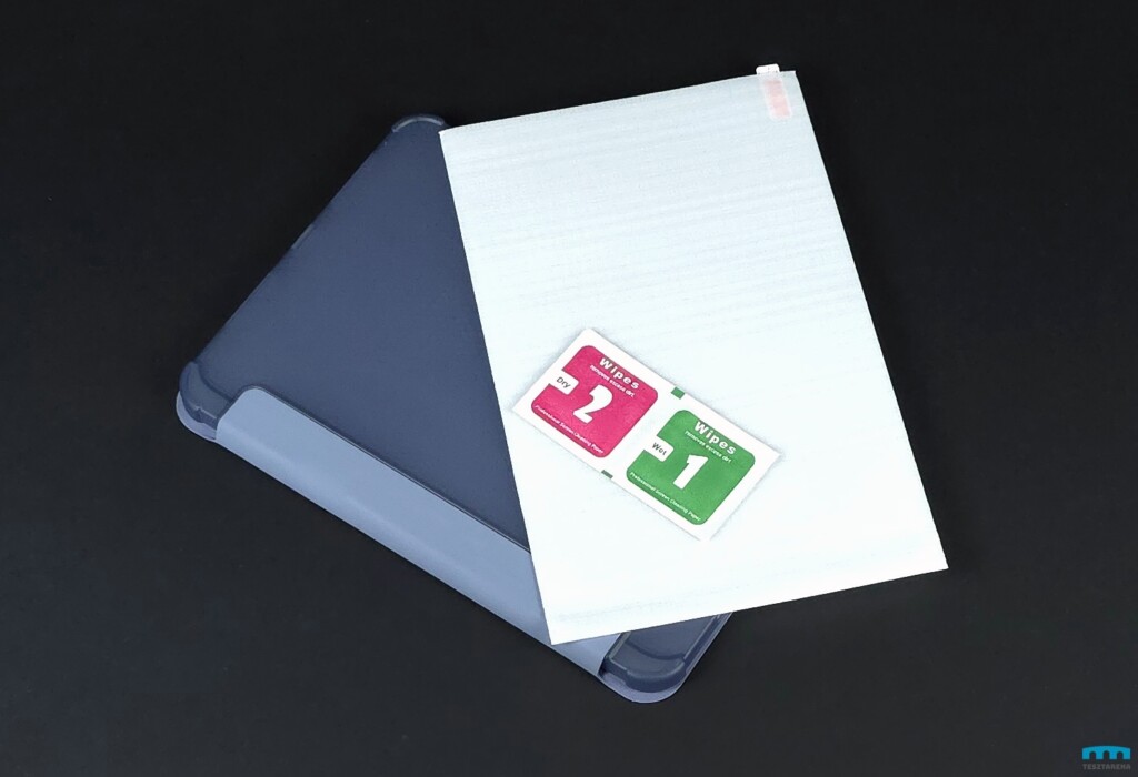 Egész jól felszerelt, mert kapunk extra tokot, ami állvány is egyben és jár hozzá üvegfólia is.