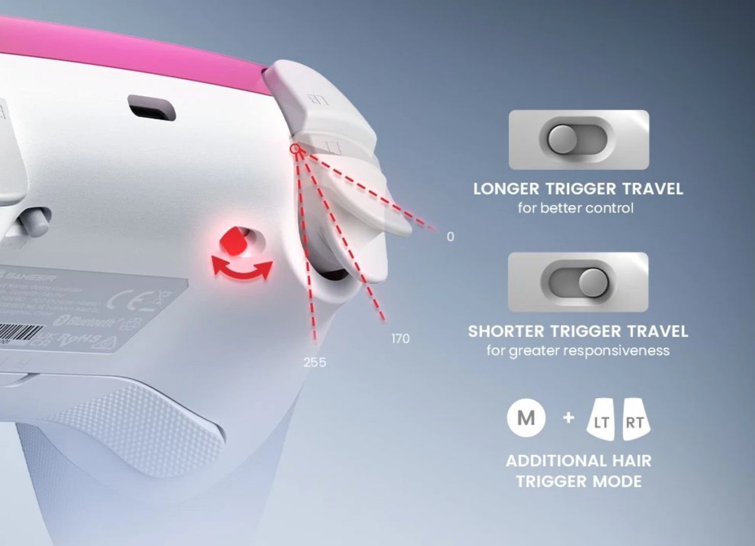 A precízen hangolt Hall Effect analóg ravaszok páratlan simaságot és érzékenységet kínálnak. A ravaszütközők lehetővé teszik a felhasználók számára, hogy a ravaszokat rövid húzású pozícióba állítsák, ami különösen hasznos lehet gyors reakciót igénylő játékokban. Ezenkívül a hajszálravasz mód aktiválható egy gombkombinációval, tovább növelve a vezérlő reakcióképességét.