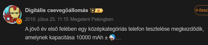 Bár a forrás nem említett konkrét márkát, a készülék a realme-tól származhat, amely korábban egy 10 000 mAh-s akkumulátorral szerelt koncepciótelefont mutatott be.