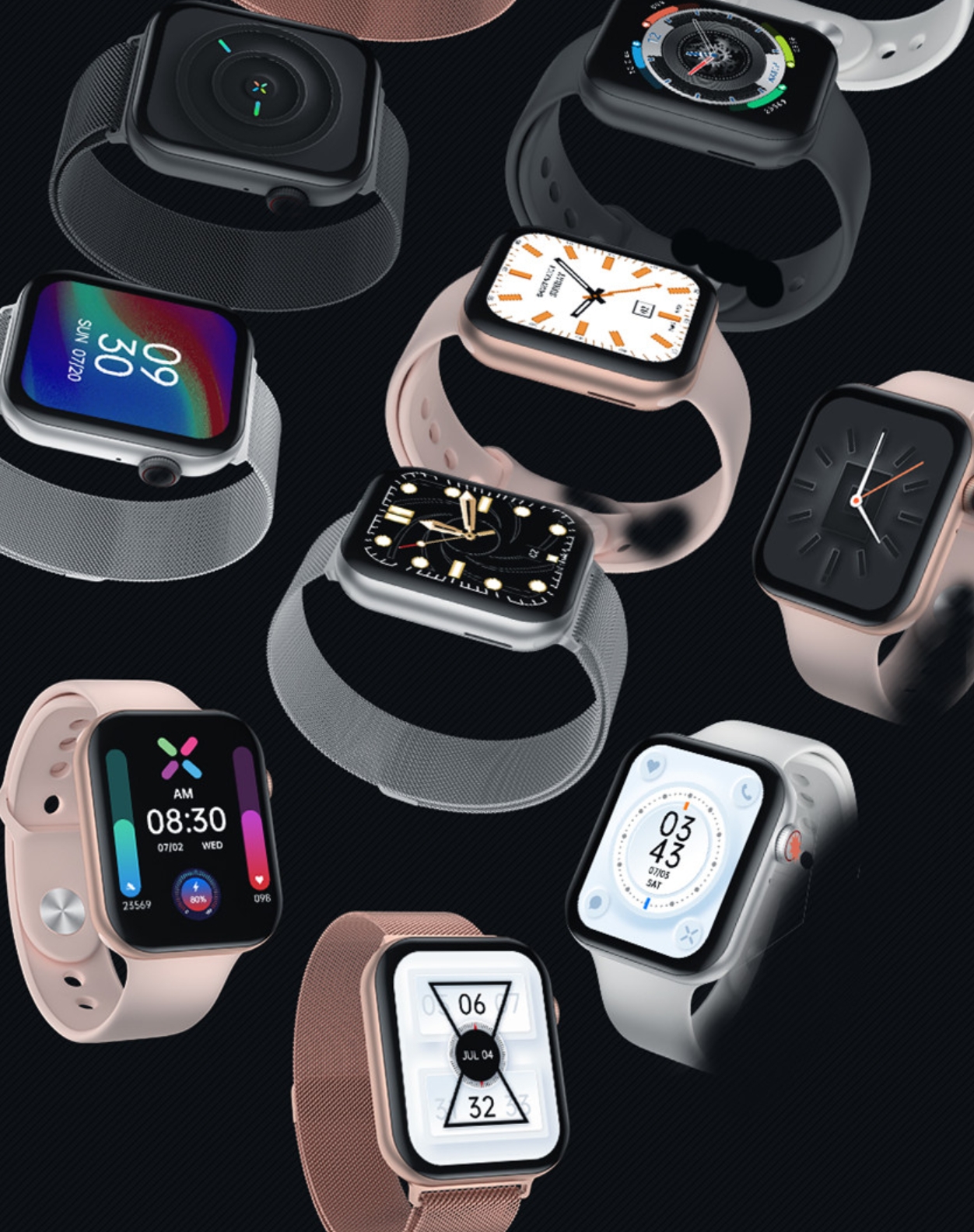 Egy igényes, négyszög okosóráról van szó, amelynek a fém óraháza lehet fekete, ezüst és arany / rózsaszín, gyárilag cserélhető fekete, fehér, rózsaszín szilikon szíjjal.