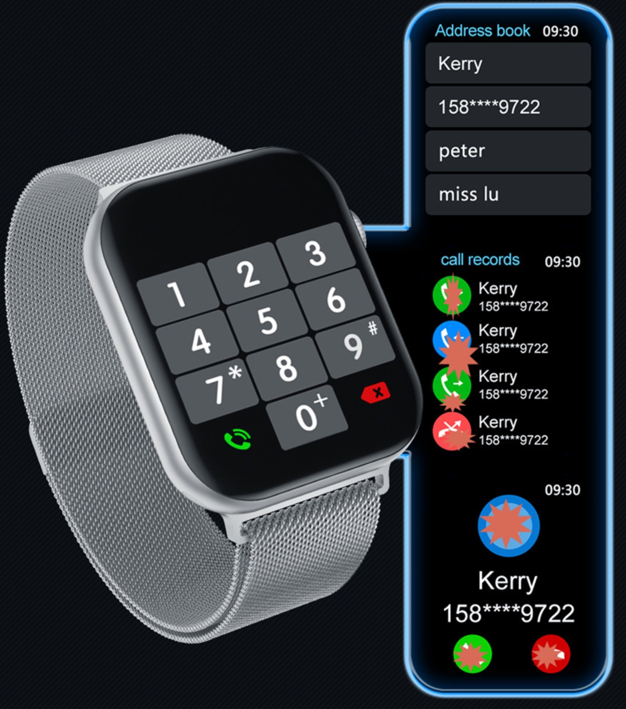 Nem csak kijelzi a bejövő hívást, hanem bluetooth-on keresztül a teljes hívás lebonyolítható az órával, tehát van beépített mikrofonja és hangszórója is. Sőt, hívás is indítható közvetlenül az óráról.