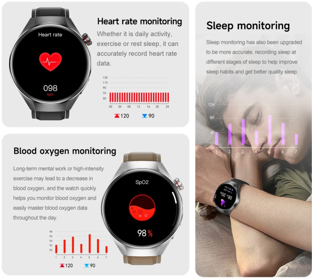 Pulzusmérés, véroxigénszint mérés, lépésszámlálás, megtett távolság mérés, elégetett kalória, sportolás nyomon követése