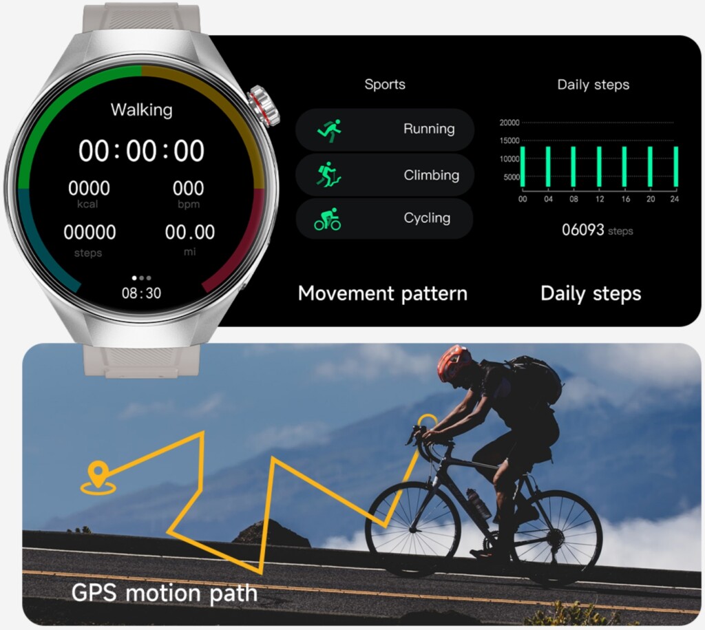 100+ sportot és mozgásformát támogat és méri az eltelt időt, pulzust, távolságot, stb.