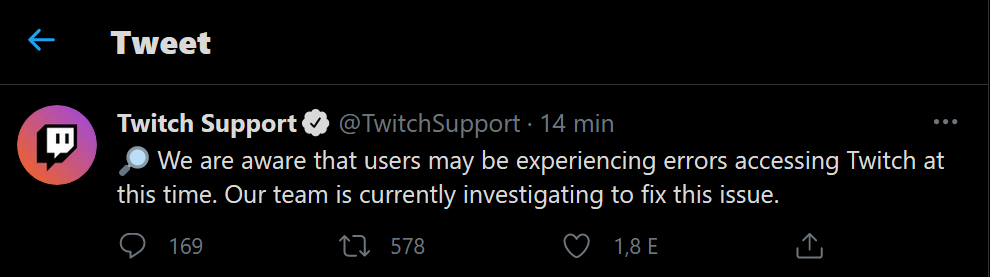 A hibát a Twitch is jelezte, vélhetőleg hamarosan újra működik.