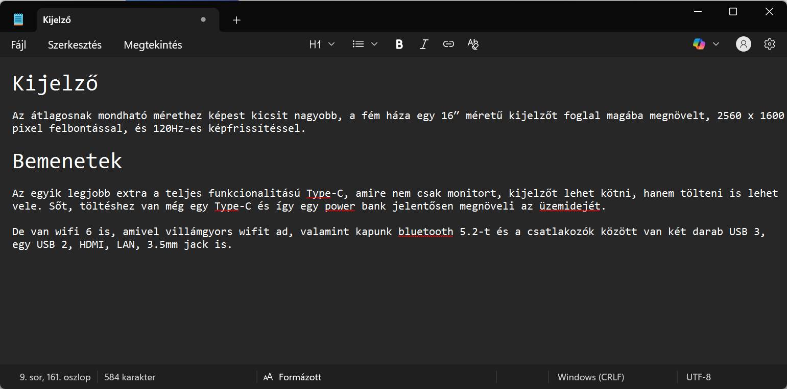 Megjelent a formázás lehetősége is és ilyenkor egy speciális, de univerzális, más programok által is felismerhető markdown (.md) formátumban menti el a fájlokat.