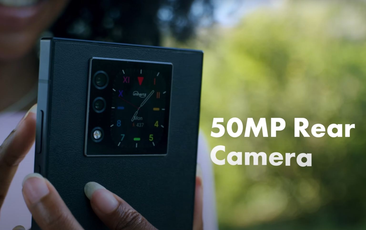 A hátlapon egy másodlagos, 2 hüvelykes kijelző is található (410 x 502 pixel), amely a kameramodulba van beépítve, és amely értesítéseket, widgeteket jeleníthet meg, vagy szelfi előnézeti képernyőként is funkcionálhat.
