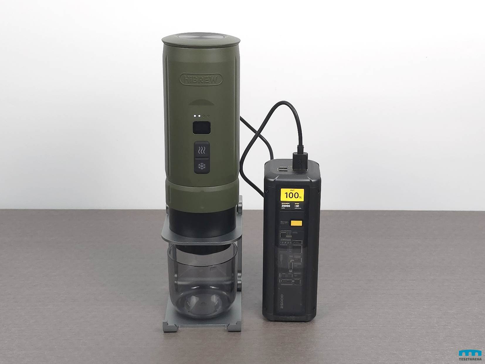 Ami nagy előnye, hogy akkumulátoros (7500 mAh) és cserélhetők az akkumulátorok. A három darab akkumulátorral 4-5 kávé főzhető le egy feltöltéssel hideg vízzel (50ml) és 200 meleg vízzel.