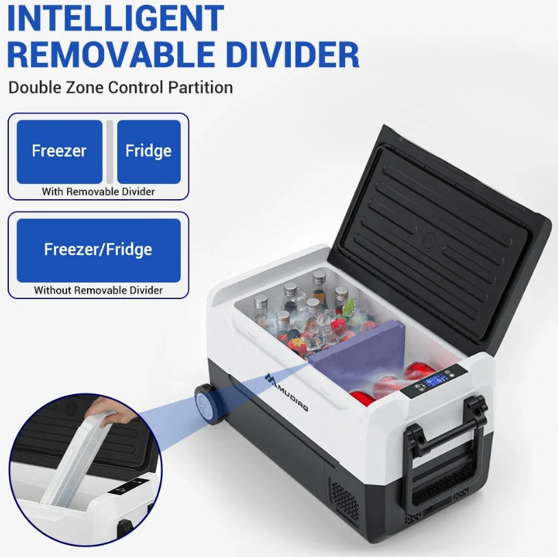 A belső tér variálható, a kivehető elválasztónak köszönhetően egyszerre hűthetsz és fagyaszthatsz is – így a sör mindig hideg, a jégkrém pedig nem olvad el.