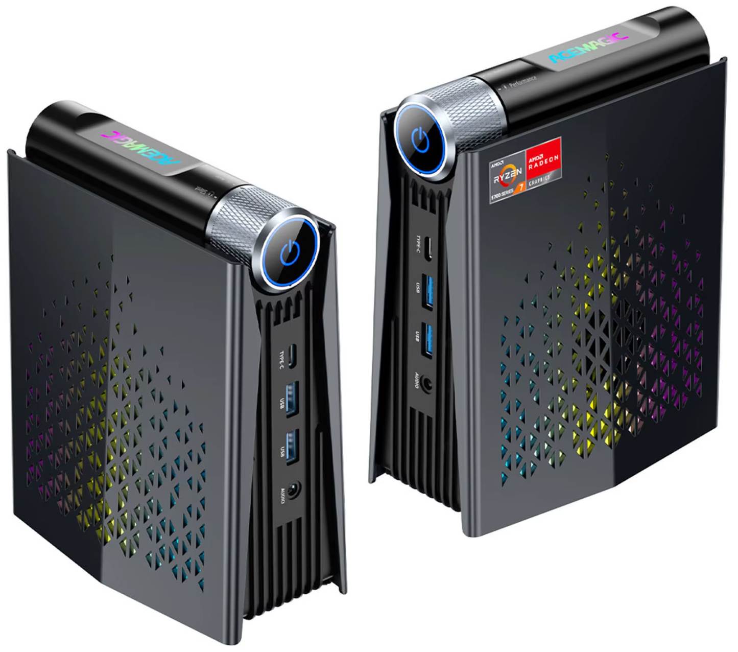 Valószínűleg a valaha készült egyik legegyedibb mini PC-vel van dolgunk, az oldalain RGB világítással, forgatható teljesítmény gombbal.