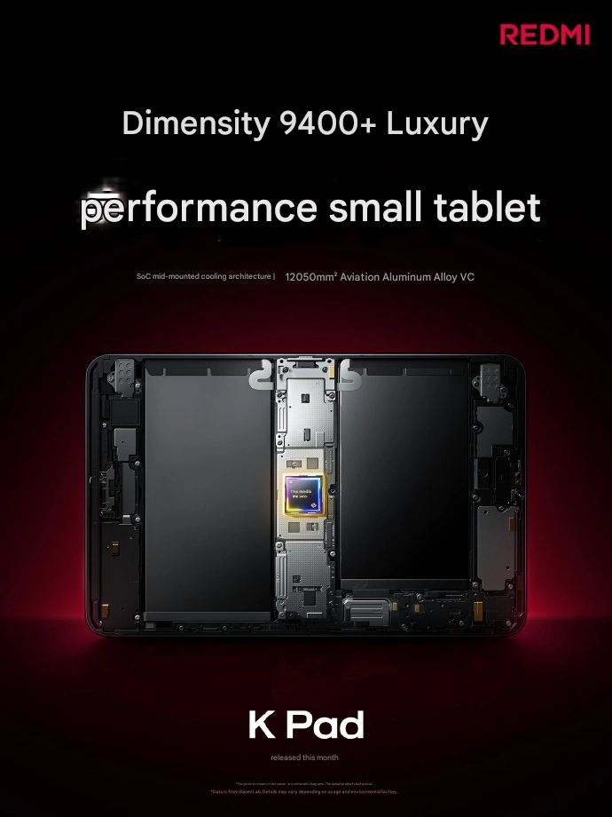 A gyártó a legújabb Dimensity 9400+ lapkakészlettel szereli fel az eszközt, így a K Pad agresszíven versenyezhet a nagy teljesítményű tabletek piacán.