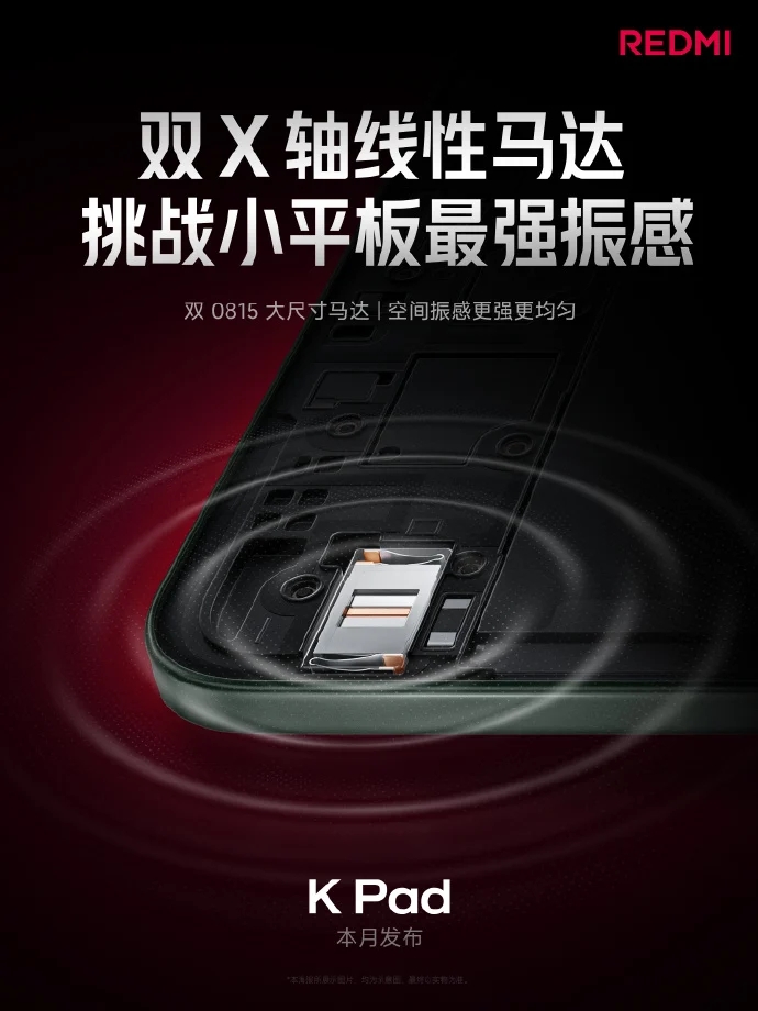 A REDMI megerősítette a nagyméretű, dupla X-tengelyes lineáris motorok jelenlétét is, amelyek célja az erős és egyenletes haptikus visszajelzés biztosítása, ami szokatlan tulajdonság a kompakt tabletek esetében.