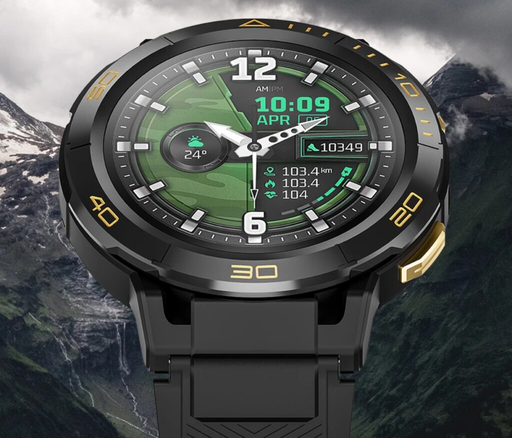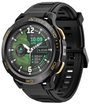 1.43″ méretű AMOLED kijelzője van nagy, 466*466 pixel felbontással.