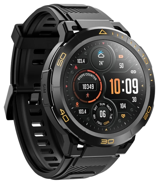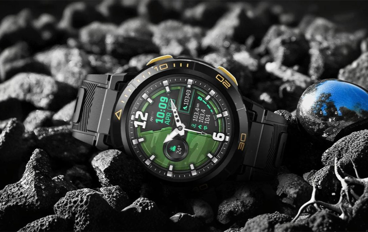 1.43″ méretű AMOLED kijelzője van nagy, 466*466 pixel felbontással.