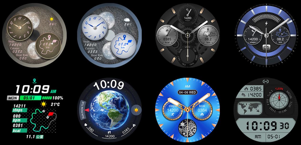 Az alap óralapokon kívül további óralapokat ad és saját is készíthető, akár videóból is.