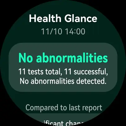 Van beépített EKG funkció rendellenesség-értesítésekkel (pl. A-fib figyelmeztetésre). A Health Glance gyorsjelentés 60 másodperc alatt több mint 10 kulcsmetrikát tud összefoglalni.