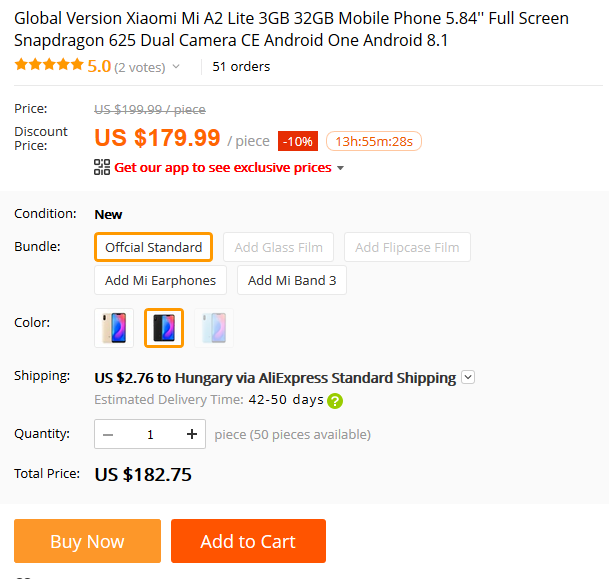A spanyol AliExpress idő előtt leleplezte a Mi A2 Lite (global verzió) árát.
