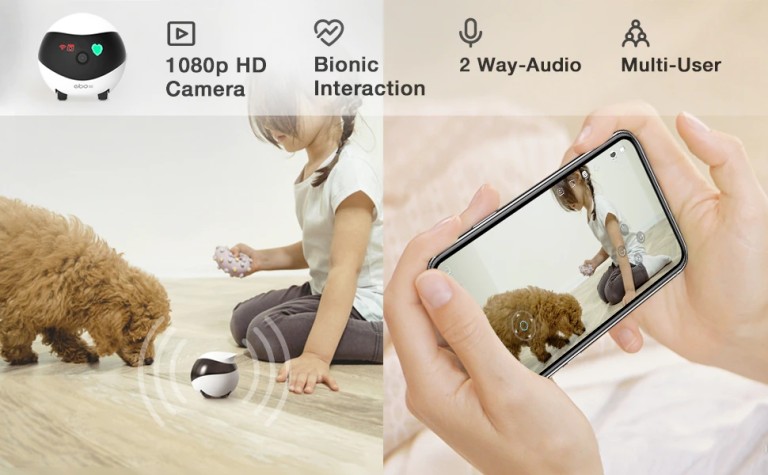 Az Enabot kamerája egy olyan wifi kamera, aminek kereke van és távolról vezérelhető, akár házon kívülről is, így bárhova, másik helységbe is átküldhető.