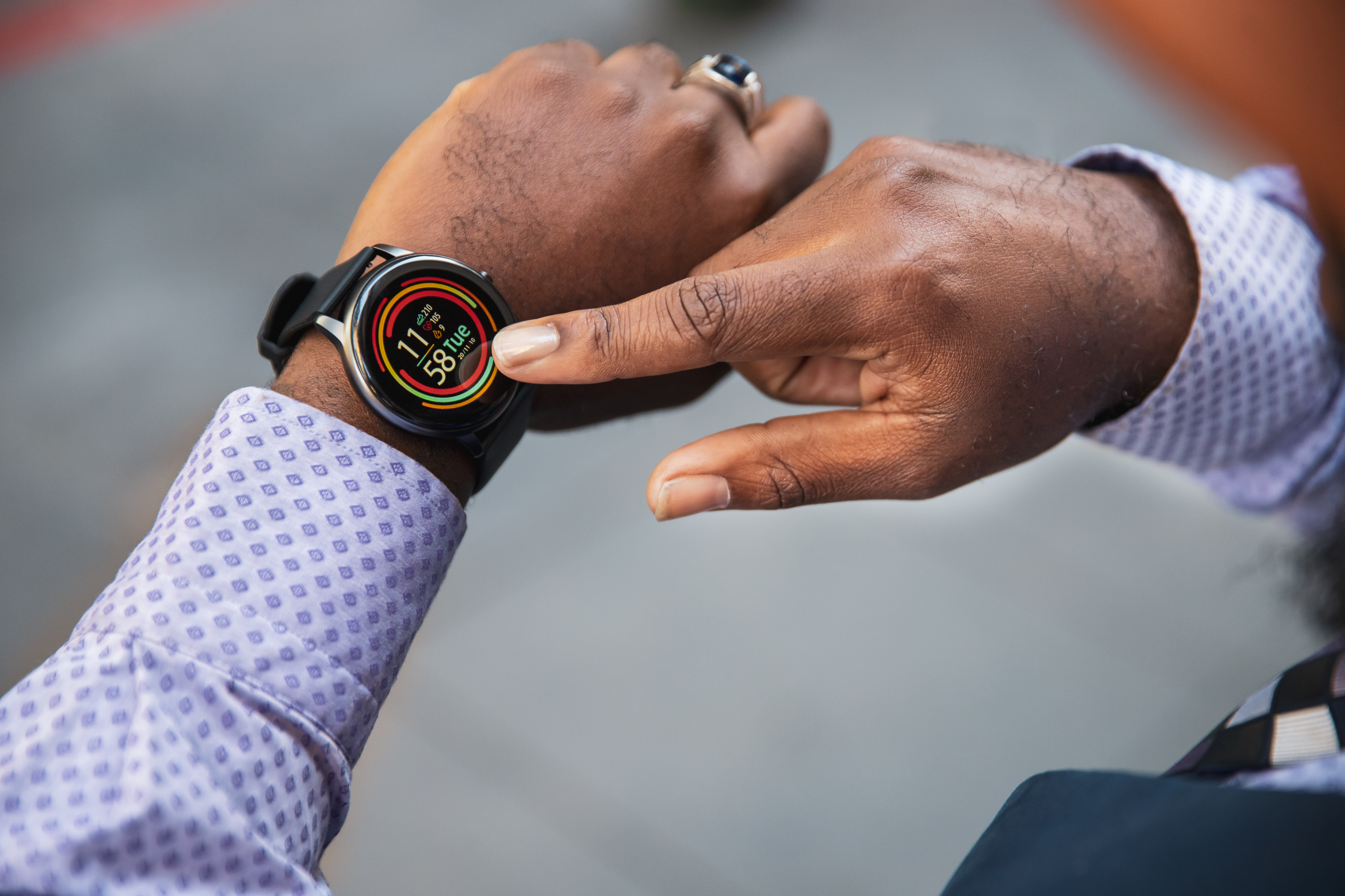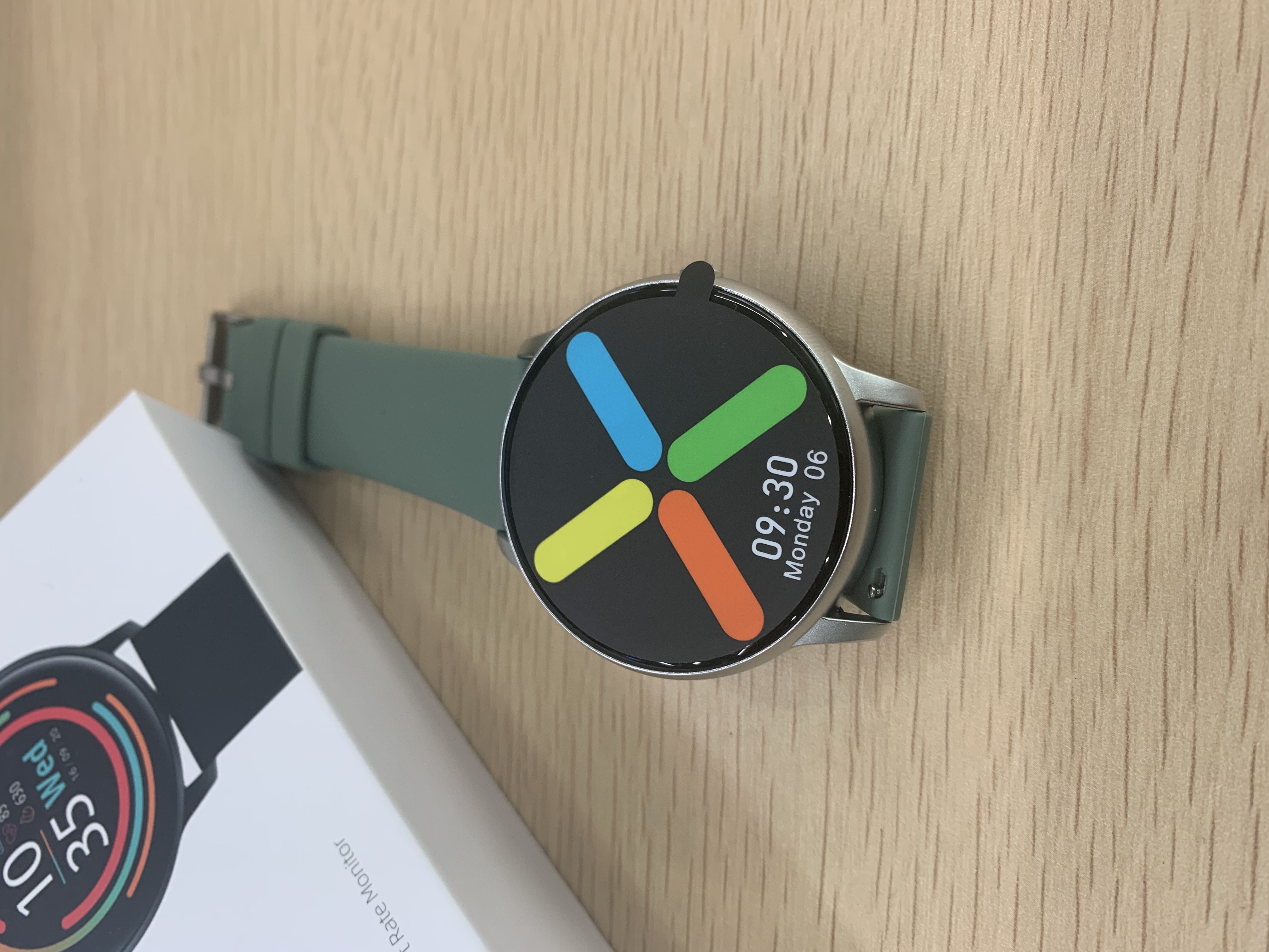 Az érintőkijelzője kellőképpen nagy, 1.28″ méretű, 240*240 pixel felbontással. Lekerekített, 2.5D üveg védi, amely mindenképpen szebb külsőt ad neki.