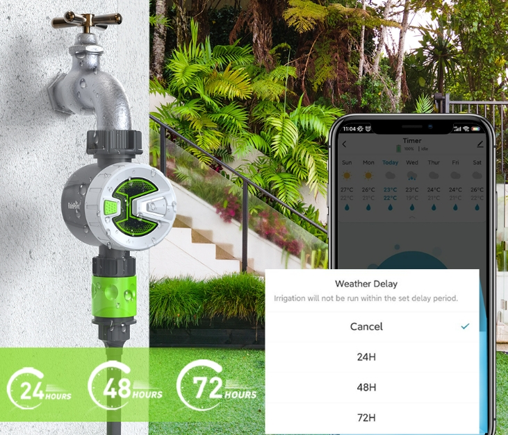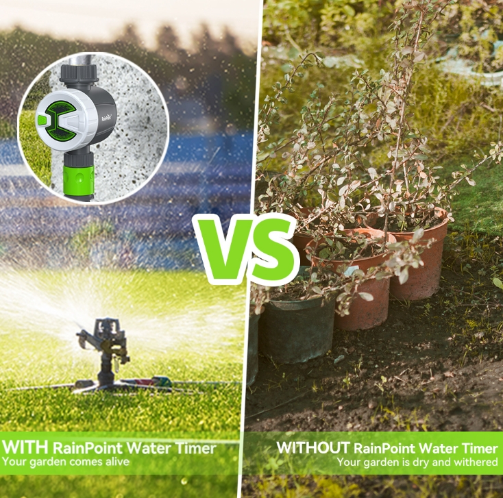 A Rainpoint öntözőidőzítő igazi társ a kertgondozásban, miáltal elérhető wifi, vagy bluetooth vezérléssel is, így ennek köszönhetően akár otthonról, akár távolról, okostelefonon keresztül is irányítható.
