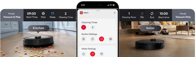 Az intelligens vezérlés terén az Ultenic T10 Lite széleskörű kompatibilitást kínál. A készülék együttműködik az Amazon Alexa, Apple Siri és Google Assistant rendszerekkel, így akár hangutasításokkal is irányítható. A saját alkalmazáson keresztül részletes térképezési és vezérlési lehetőségek érhetők el, beleértve a takarítási ütemezést, a szívóerő beállítását, valamint a “no-go” zónák kijelölését, ahová a porszívó nem léphet be. Az alkalmazás támogatja az IFTTT (If This Then That) automatizációs protokollt is, ami lehetővé teszi különböző okosotthon-forgatókönyvek létrehozását.