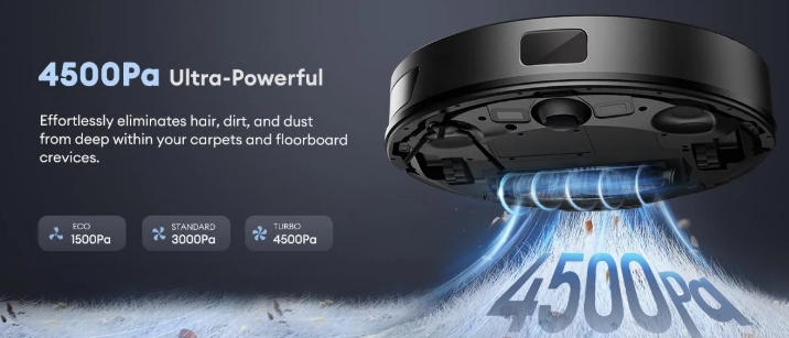 A készülék technikai paraméterei között kiemelkedik a 4500 Pa szívóerő, ami kategóriájában rendkívül erősnek számít. Ez a teljesítmény lehetővé teszi, hogy a robotporszívó hatékonyan távolítsa el a port, hajszálakat és szennyeződéseket különböző padlófelületekről, beleértve a szőnyegeket és kemény padlókat is.