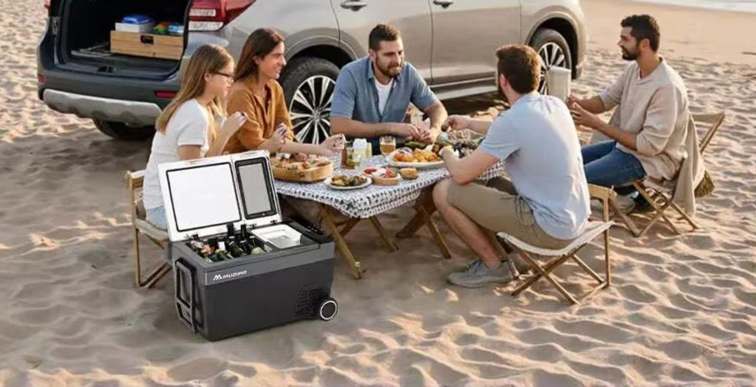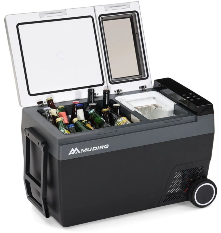 Nyáron kint a kertben, vagy éppen a vízparton mindig jól esik egy hideg ital, vagy éppen fagyi – hát vagy éppen egy kis jég, amit ott helyben készítesz. Na a Mudiro extra nagy, 45 literes mobil hűtője pont erre képes.