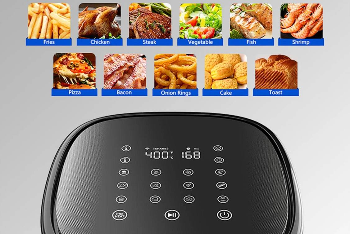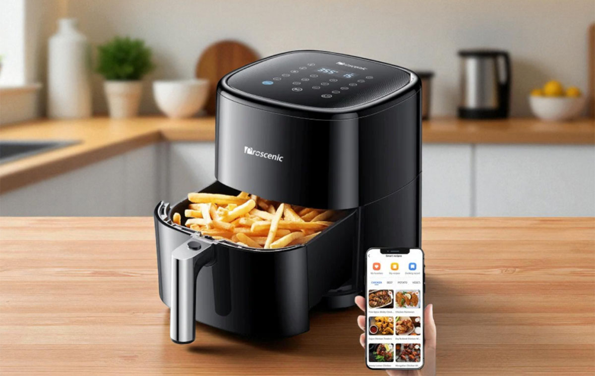 A Proscenic T22 okos és kényelmes, mivel mobilalkalmazásból vagy akár hangutasítással is vezérelheted, az appban pedig több mint 100 recept közül választhatsz.