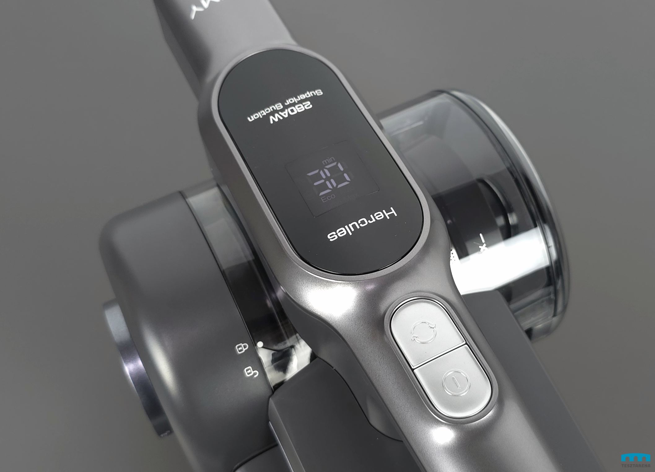 Két gombja van és egy kijelzője, amin mutatja a hátralévő időt és kiválasztott szívóerő módot is.