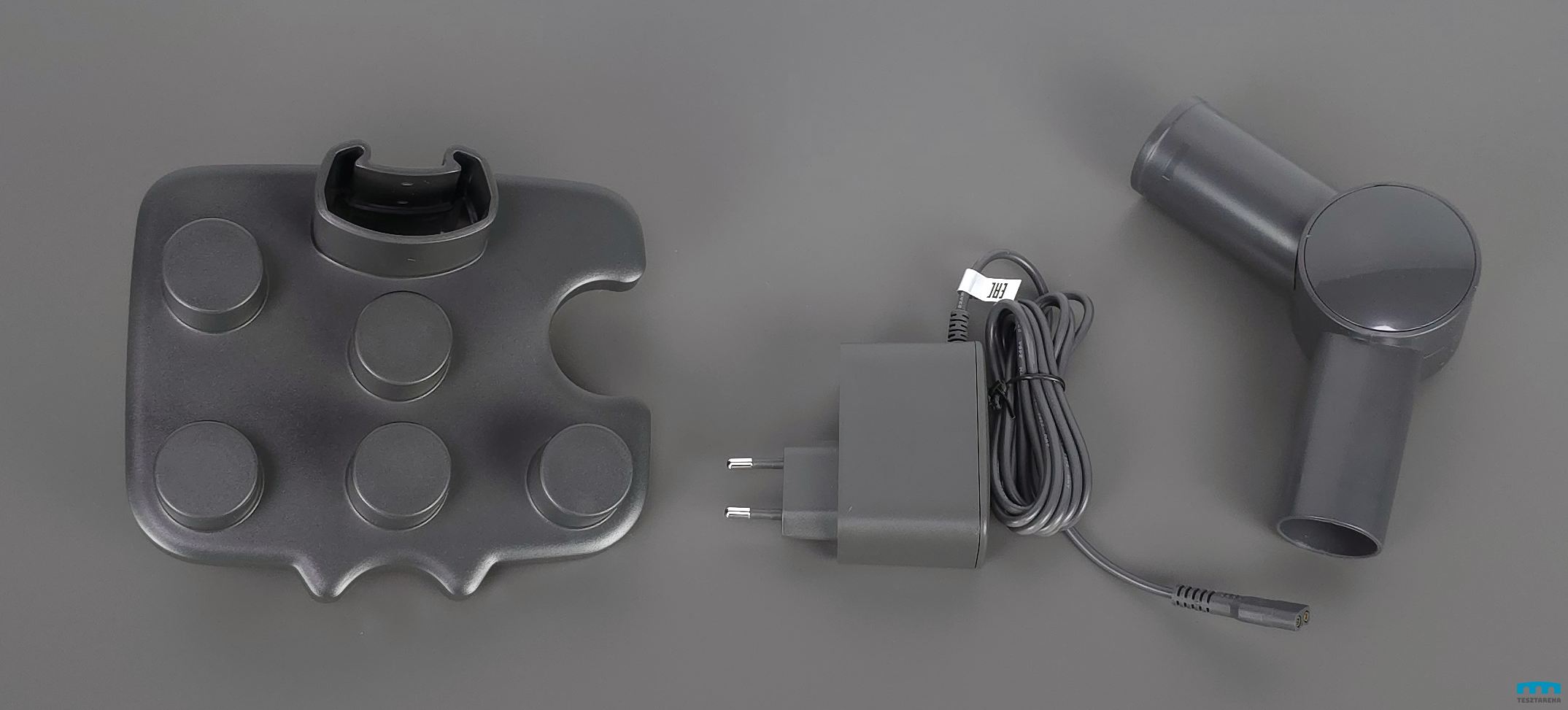 Maga a porszívó fő egysége egyébként 2.5kg, a csővel és a normál porszívófejjel együtt 3.5kg.