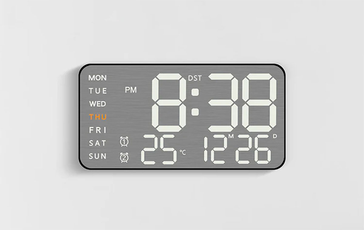 A modern otthonok elmaradhatatlan eleme lehet ez a látványos, digitális LED falióra, amely nemcsak az időt mutatja, hanem valóságos információs központtá válik.