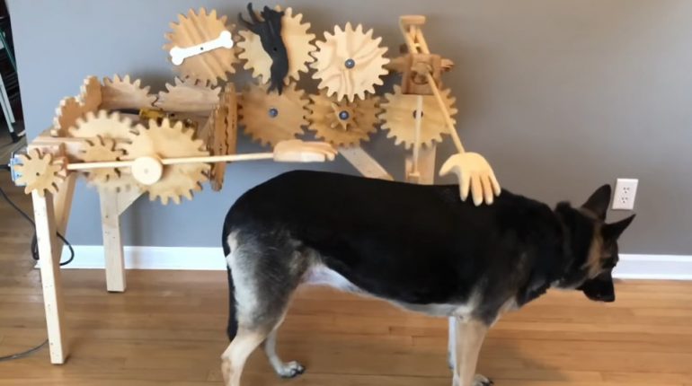 Bárki megmondhatja, akinek kutyája van, hogy szeretett ebe képtelen betelni az emberi közelséggel, simogatással. Viszont sajnos csak keveseknek adatik meg, hogy a kutyájuk mellett legyenek egész nap. Szerencsére elkészült a kutyasimogató gép 😀 – ami ha a személyes jelenlétet nem, a simogatást pótolni tudja.