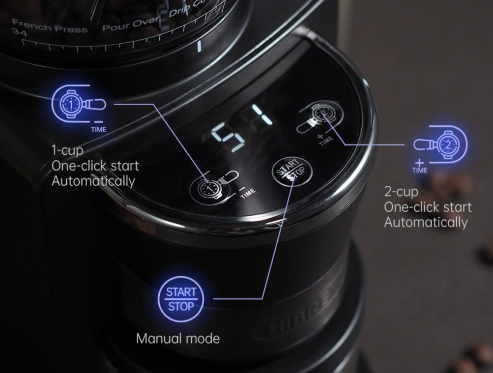 Ez nem egy filléres kávédaráló, ami ránézésre is látszik és masszív, igényes. A tartályába 100g kávé fér, a kezelése egyszerű, a kijelzőn mindent tisztán látható.